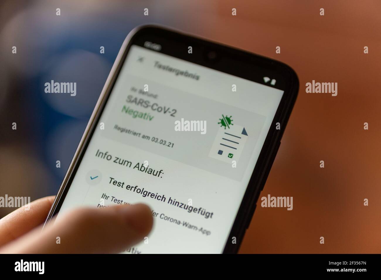Berlin Germany Mar 13 2021 Corona Warn App Shows A Negative Result From A Corona Test The German Mobile App Should Fight The Covid 19 Pandemic I Stock Photo Alamy
